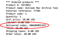 2) Open Outlook Mac Archive Tool, find the “Delivered Codes” in your purchase confirmation email from 2CheckOut and press the ‘Activation Request’ button. IMPORTANT: Your product will become fully functional immediately but you will STILL need to finalize your activation in the next steps to make it permanent. If you don’t finalize with 3 days it will revert to simulation mode and no longer fully functional.